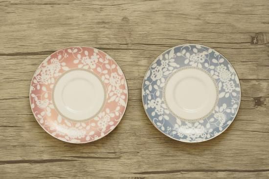 繊細な花柄模様が施されたカップは、上品なピンクと爽やかなブルーのアソートカラーで、ティータイムやコーヒータイムを上品に彩ります。